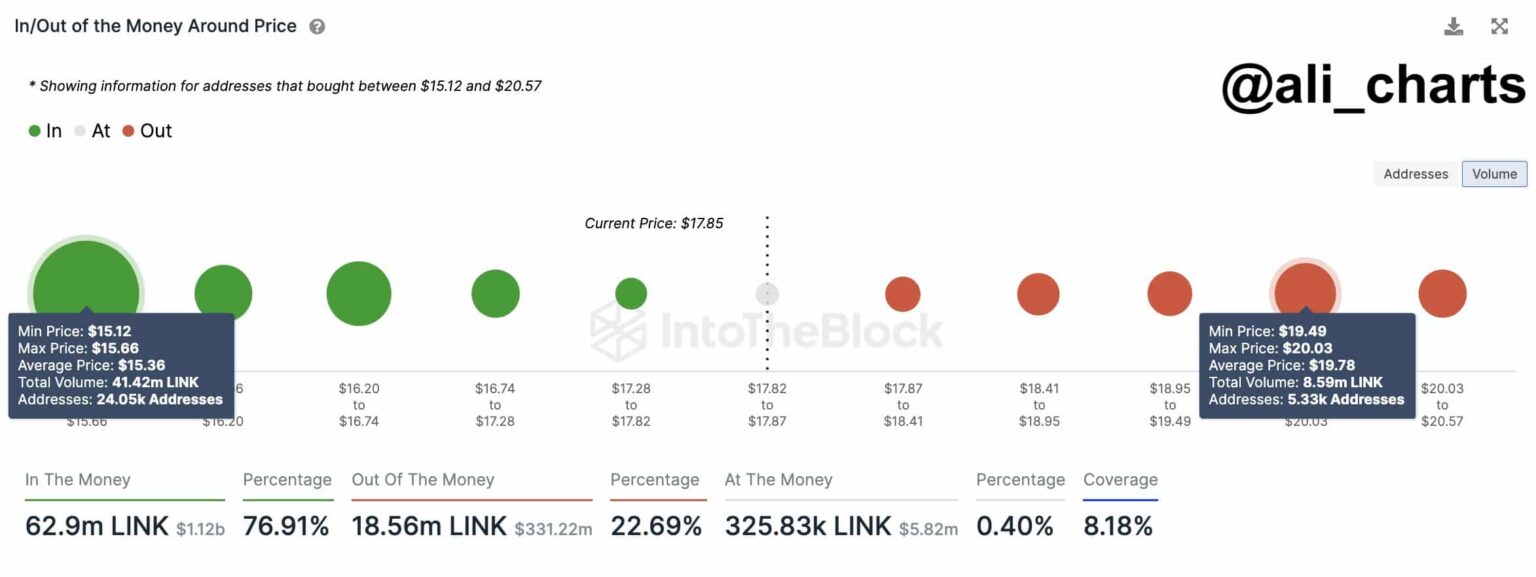 La importancia de este nivel de resistencia sugiere una concentración sustancial de tenencias de LINK entre una multitud de direcciones, lo que enfatiza el impacto potencial en la dinámica del mercado a medida que Chainlink se acerca a la marca de los $20. Los inversores y participantes del mercado están monitoreando de cerca estos indicadores en cadena, ya que brindan información valiosa sobre los posibles movimientos de precios y el sentimiento general que rodea a Chainlink en el mercado de cifrado.
