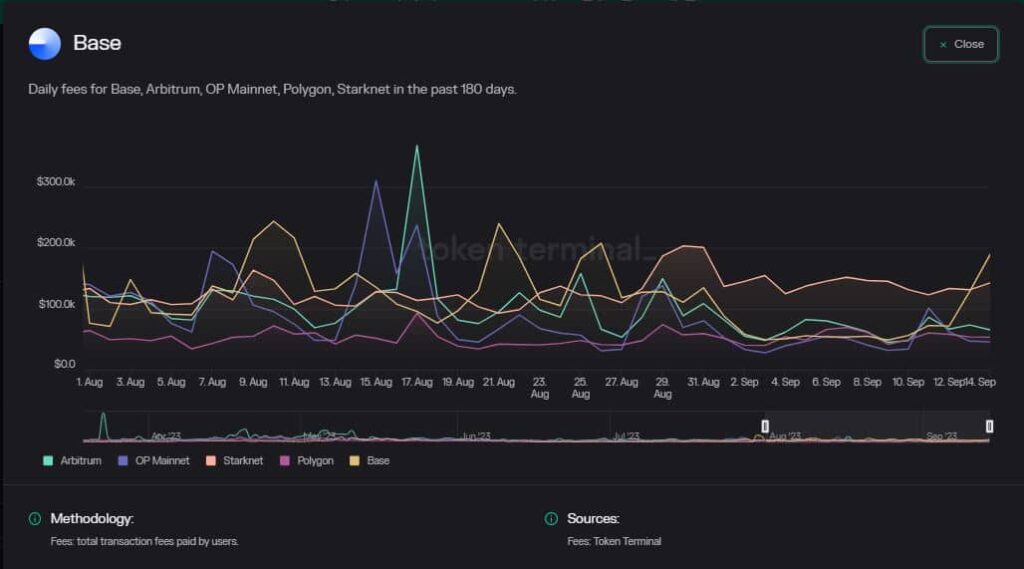 Según una publicación del 14 de septiembre, la popular herramienta de análisis en cadena Token Terminal llamó la atención sobre otro hito logrado por la L2 del ecosistema Coinbase.