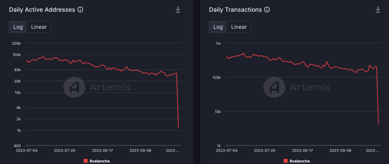 A pesar de estos logros, la actividad general en Avalanche experimentó recientemente una caída significativa. Los datos de Artemis revelaron una disminución sustancial en los usuarios activos diarios y sus transacciones asociadas.