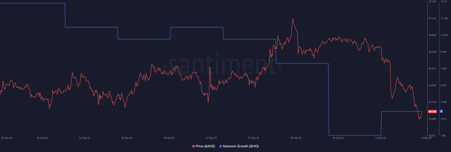 A pesar de los esfuerzos proactivos de Aave, el crecimiento de su red estaba en declive al momento de esta publicación. Esto sugirió que las nuevas direcciones mostraban un interés cada vez menor en GHO.