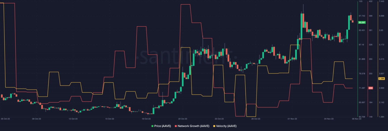 Sin embargo, fue una señal positiva que AAVE pudiera mantener su impulso alcista, a pesar de los acontecimientos recientes. Recientemente, Aave enfrentó un problema y tuvo que detener ciertos mercados el 4 de noviembre.