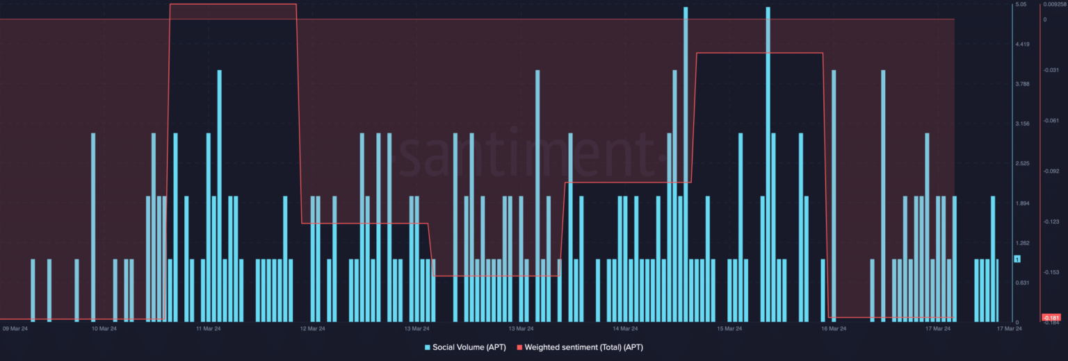 A medida que aumentó la volatilidad, APT siguió siendo un tema de discusión en el espacio criptográfico ya que su volumen social se mantuvo alto.
