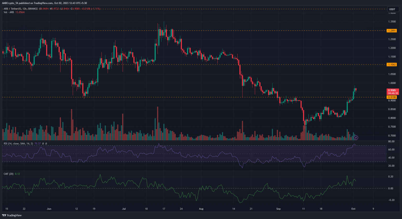 arbitraje [ARB] Continuó su fuerte repunte alcista, ya que superó el nivel de resistencia de $ 0,919. Esto amplió sus ganancias alcistas en un 9% en las últimas 24 horas.