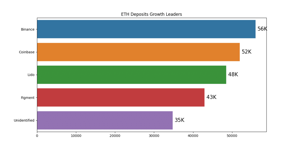 Con 48,480 ETH en nuevas participaciones netas realizadas en Ethereum a través de Lido entre el 9 y el 16 de octubre, el protocolo de finanzas descentralizadas (DeFi) se ubicó detrás de Coinbase y Binance, que registraron nuevos depósitos netos de 56,000 ETH y 52,000 ETH, respectivamente, según datos de Análisis de dunas.