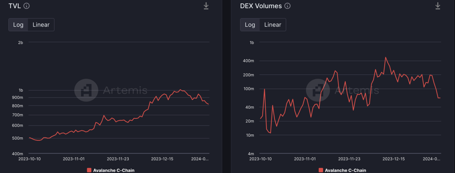 En particular, los volúmenes de valor total bloqueado (TVL) y de intercambio descentralizado (DEX) en la red experimentaron una disminución masiva en las últimas semanas.
