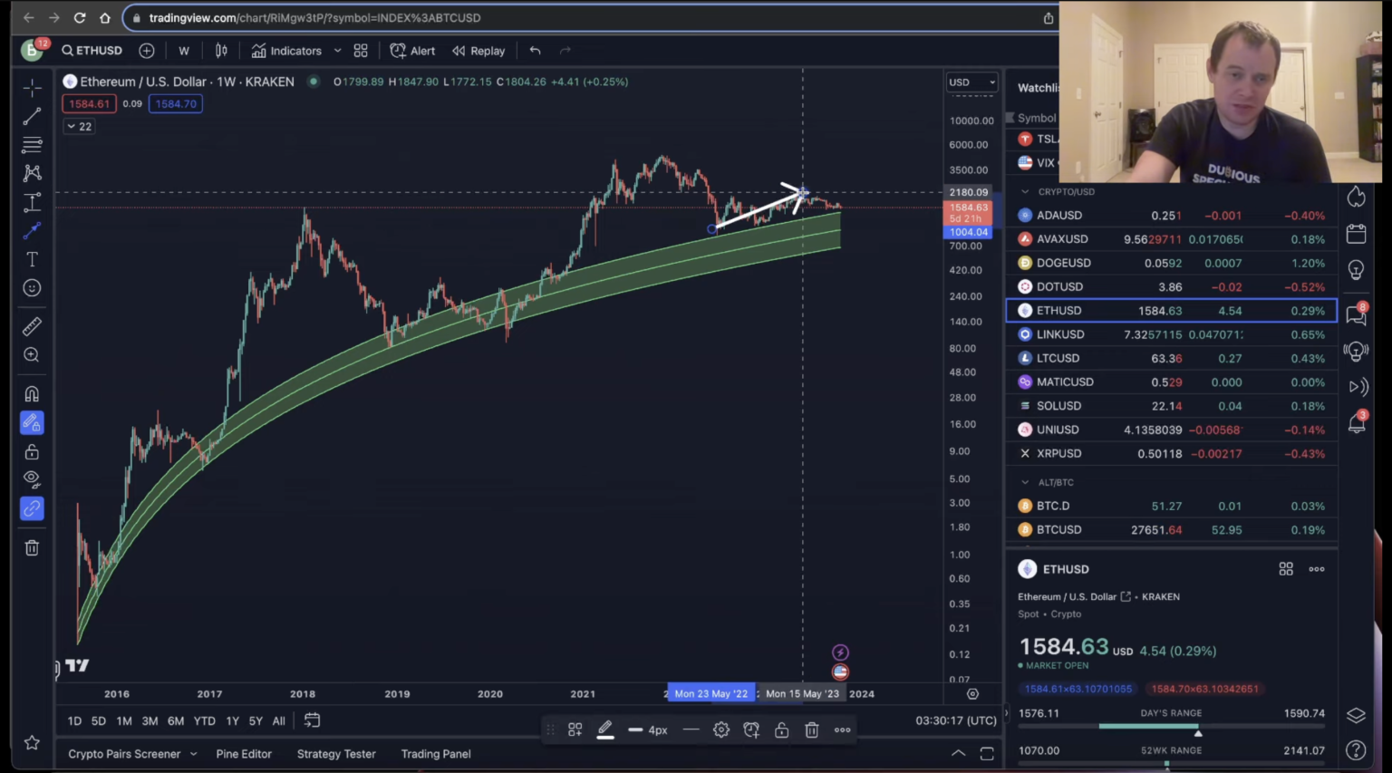 [We’ve] Amigos míos, todavía tengo que ver a ETH regresar a casa, y aún no ha sucedido. Entonces creo que así será. Y nuevamente, se puede ver en estos períodos de tiempo más bajos, al menos durante el último año y poco más de un año, que está tratando de mantener esos niveles. Pero nuevamente, en algún momento, es probable que se rompa, y cuando lo haga, es probable que sea cuando Ethereum comience a regresar a casa”.