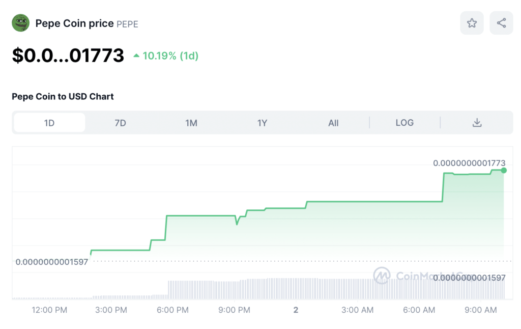 Pepe Coin sube más del 10%