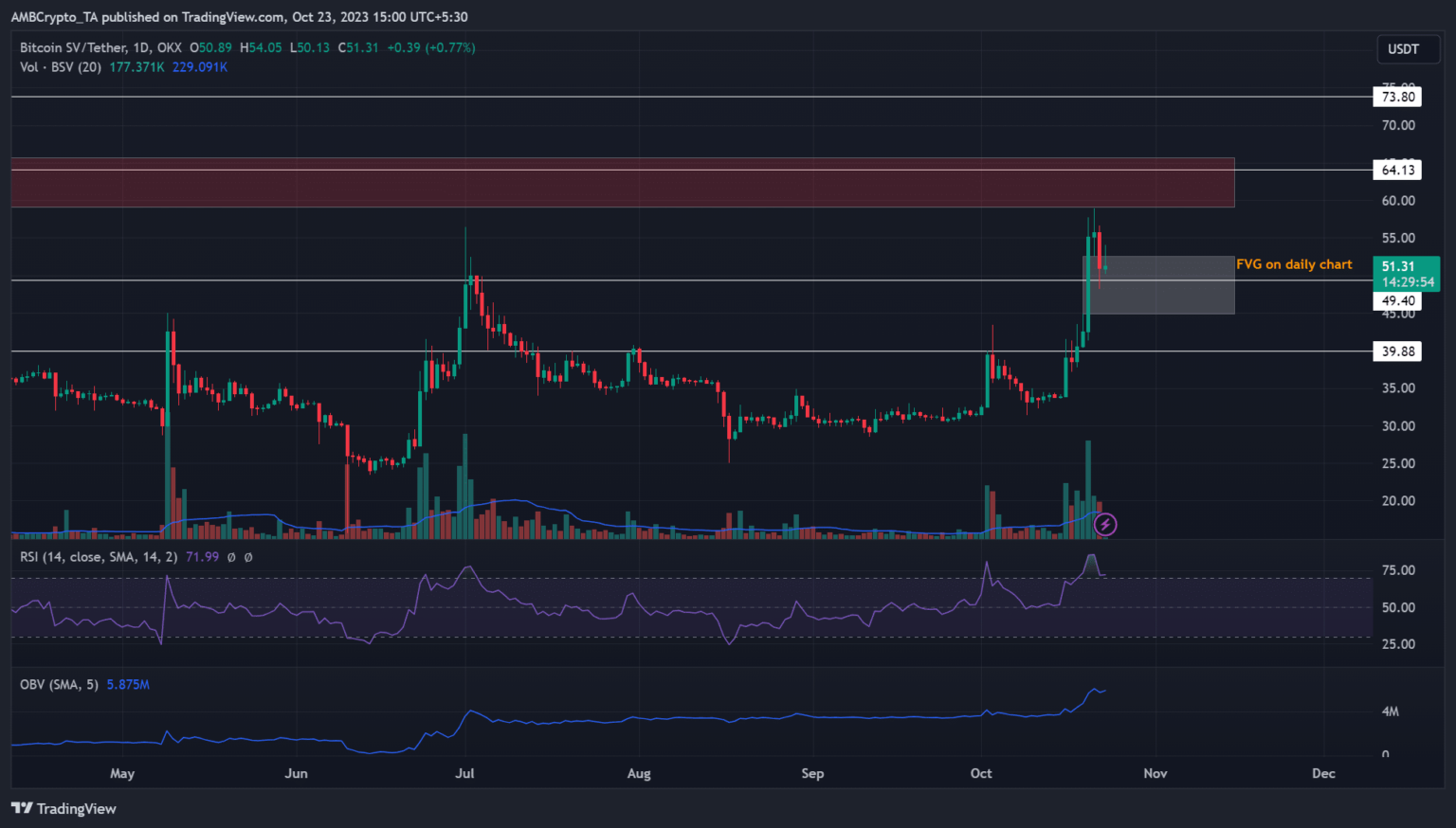 Pero una caída prolongada por debajo de la brecha de valor razonable (FVG) podría arrastrar a Bitcoin SV a la marca de $40 o menos.