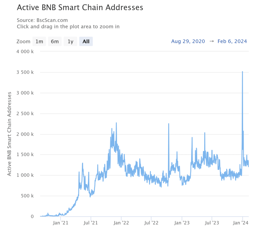 El análisis de la tendencia de la billetera activa de Binance en su Explorer mostró una reciente disminución en la actividad. El gráfico mostró que la red experimentó su fase más activa en diciembre.