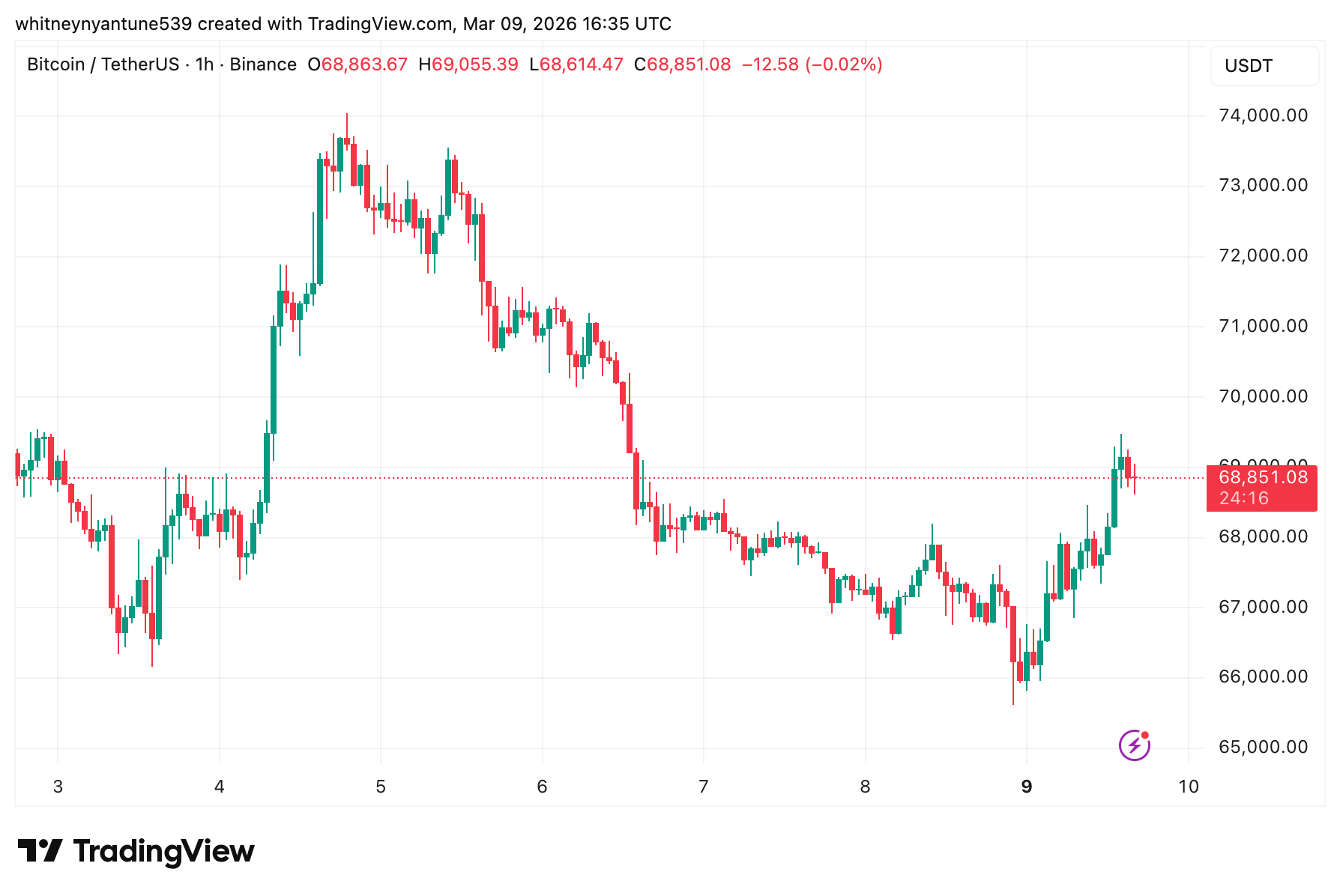 Si bien Bután vendió hoy, el precio de bitcóin recuperados durante el mismo período. Al momento de esta publicación, el precio de BTC era de $68,879, un aumento del 2,64% en las últimas 24 horas. El rebote empujó a Bitcoin de nuevo hacia una importante zona de resistencia cercana a los 69.000 dólares.