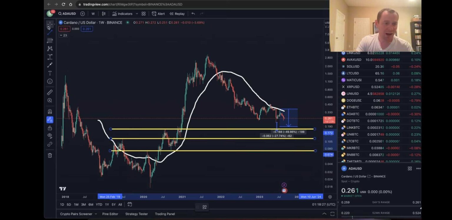 “Desde el último esfuerzo de los Bulls en la semana 50 [moving average]el [Nasdaq] cayó un 50%. ¿Qué significaría eso para ADA? Desde este nivel, 0,37 dólares, por lo que no 0,26 dólares, que es lo que estamos ahora, pero desde 0,37 centavos de dólar, ¿cómo sería una caída del 49% al 50%? Eso situaría a ADA por debajo de 0,20 dólares.