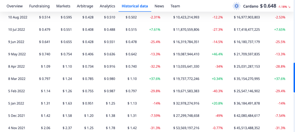 En el mismo mes de 2023, altcoins como Cardano no salían completamente de la fase de depresión. Sin embargo, 2021 fue diferente ya que el precio del token ganó un 13,7%.