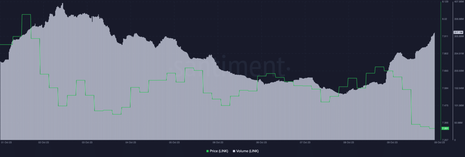 Según el tweet de Lookonchain del 10 de octubre, varios poseedores importantes estaban transfiriendo sus tokens LINK a Binance. [BNB] intercambio. Una billetera, conocida como “0x009D”, depositó una cantidad sustancial de 122,129 tokens LINK, por un valor aproximado de $891,000.