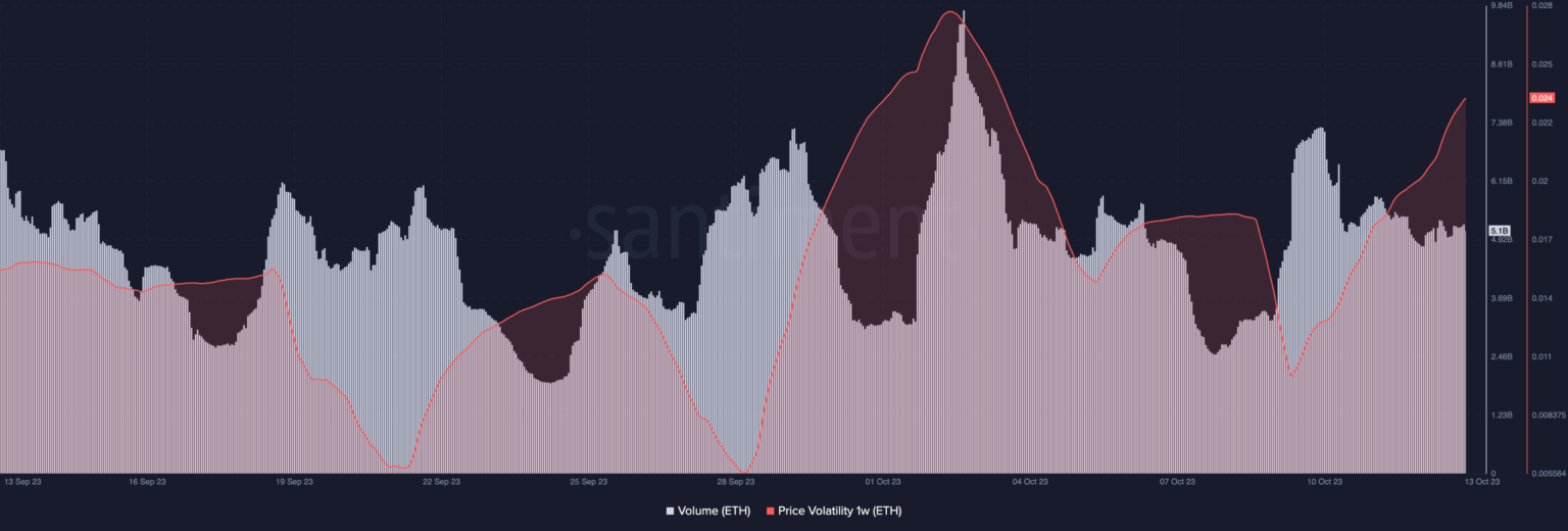 Por lo tanto, no está fuera de lugar concluir que estos inversores de Ethereum pueden estar intentando capitalizar el movimiento de precios a corto plazo. Este aumento también fue evidente en el volumen en cadena. Según los datos de Santiment, el volumen de ETH superó los cinco mil millones en varias ocasiones en los últimos 30 días.