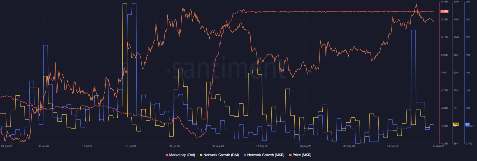 - La capitalización de mercado de DAI creció a medida que el precio de MKR comenzó a subir.