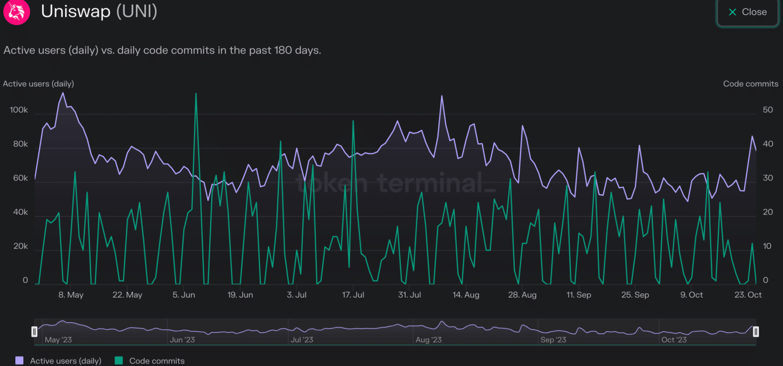 Los datos del terminal token proporcionaron información sobre el impacto de la tarifa de interfaz. Indicó un notable aumento del 34,2% en usuarios activos en la plataforma Uniswap con respecto a la semana anterior. La afluencia de usuarios fue una señal prometedora, sugiriendo que la tarifa no había disuadido a los comerciantes.