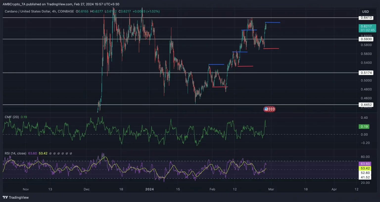Si ADA vuelve a probar con éxito la resistencia de 0,641, existe la posibilidad de que el aumento se extienda aún más.