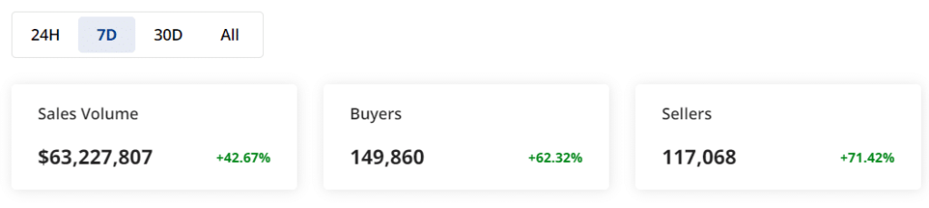 El volumen de comercio de NFT de SOL en USD también aumentó sustancialmente, lo que refleja una mayor actividad.