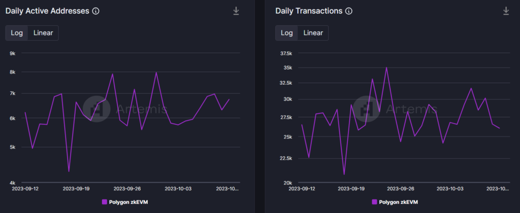 - Además de TVL, las direcciones y transacciones activas de zkEVM también aumentaron ligeramente.
