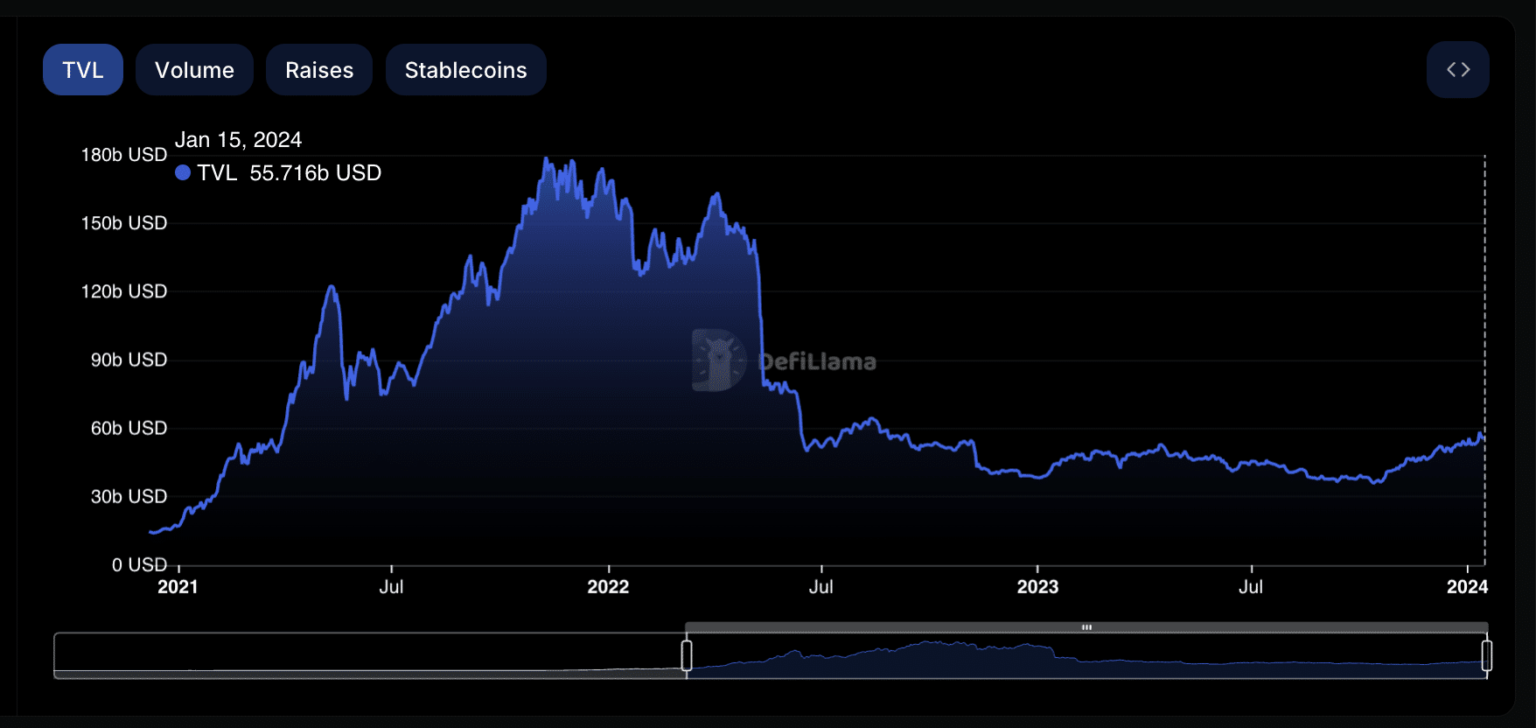 - El TVL de DeFi ha aumentado significativamente desde octubre.