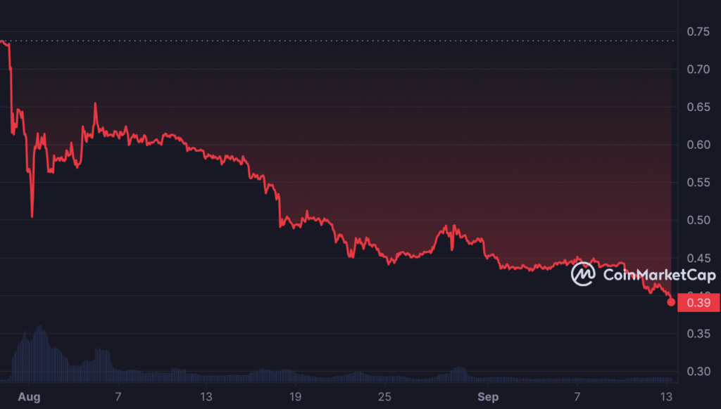 Al cambiar de manos a 0,39 dólares al momento de esta edición, su precio ha disminuido un 45% desde el exploit.