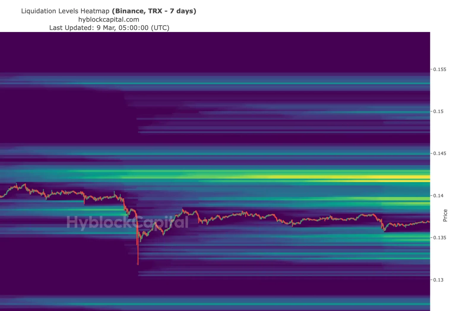 Descubrimos que se podía liquidar una cantidad sustancial de TRX justo por debajo de la marca de 0,14 dólares.