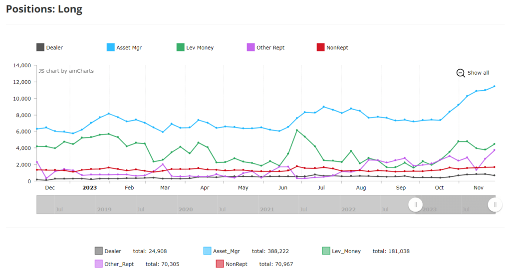 Según los datos de Bitcoin CoT registrados hasta el 28 de noviembre, Bitcoin ha experimentado un número cada vez mayor de inversiones comerciales. Los mayores picos que se produjeron en noviembre han demostrado que los inversores institucionales han mostrado mayormente interés entre las bandas de precios de 36.000 y 38.000 dólares.