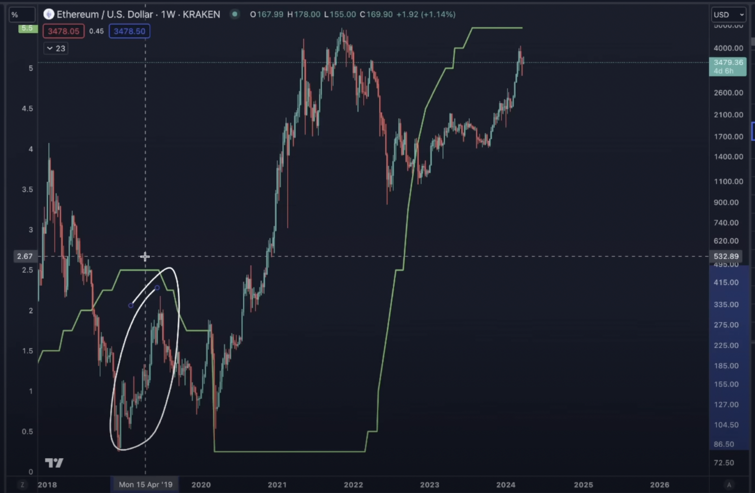 Cowen señala que en 2019, una reducción drástica de las tasas de interés coincidió con una corrección dramática para ETH. Dado que se espera que la Reserva Federal comience a recortar las tasas nuevamente en algún momento de este año, el analista sugiere que podría ocurrir un escenario similar.