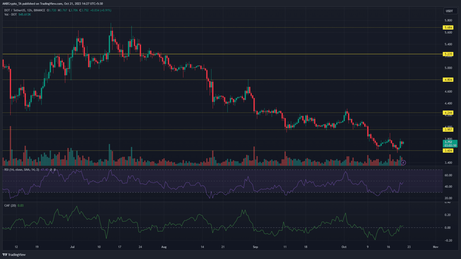 Un análisis técnico anterior de AMBCrypto destacó la intensa presión de venta sobre el DOT con la posibilidad de que la altcoin se dirija hacia otro precio bajo. Sin embargo, el rebote del precio desde el nivel de soporte ha ayudado a los alcistas en el corto plazo, aunque la presión de venta aún persiste.
