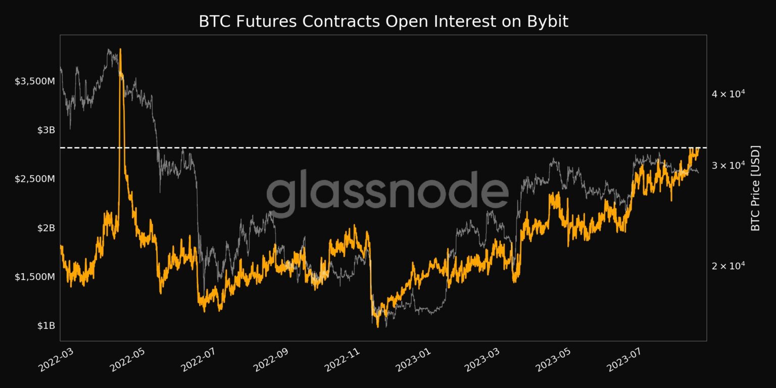 En medio de la frustración de los comerciantes e inversores debido al estancamiento de los precios, ha habido un aumento notable en el interés abierto por los contratos de futuros de Bitcoin, probablemente impulsado por una mayor demanda de los comerciantes institucionales. A pesar de los deslucidos mercados de derivados, el interés abierto de los contratos de futuros de Bitcoin alcanzó un nuevo máximo en Bybit, con implicaciones potenciales para el sentimiento del mercado, según Glassnode.