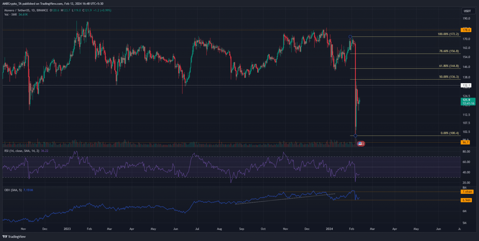 Monero [XMR] tuvo una estructura de mercado alcista en la primera semana de febrero. En las operaciones del 6 de febrero, XMR experimentó pérdidas del 39,8% en un día.