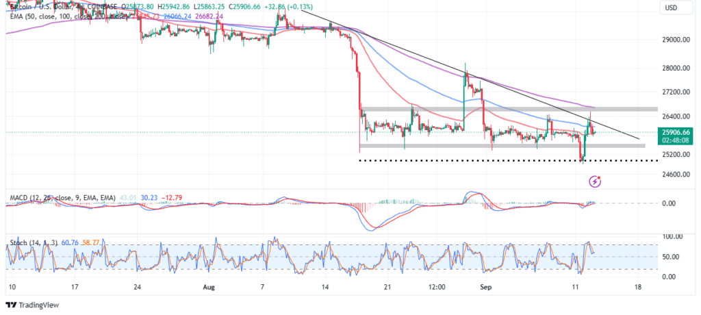 El fuerte rebote del precio de Bitcoin desde mínimos semanales de alrededor de 25.000 dólares no sólo ganó terreno por encima de los 26.000 dólares, sino que puso a prueba la resistencia a corto plazo en 26.400 dólares por segunda vez en septiembre.