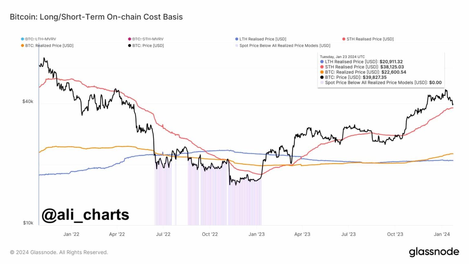 En una evaluación reciente, el criptoanalista Ali Martínez plantea una nota de advertencia, afirmando que si el precio de Bitcoin cae por debajo de $38,130, los poseedores de BTC a corto plazo pueden enfrentar pérdidas. Esta posible caída en el valor de Bitcoin podría provocar una nueva ola de ventas de pánico, ya que los tenedores buscan minimizar las pérdidas potenciales en el corto plazo. El análisis de Martínez sirve como una señal para la comunidad criptográfica, destacando la importancia de monitorear los movimientos de precios de Bitcoin y prepararse para posibles reacciones del mercado.