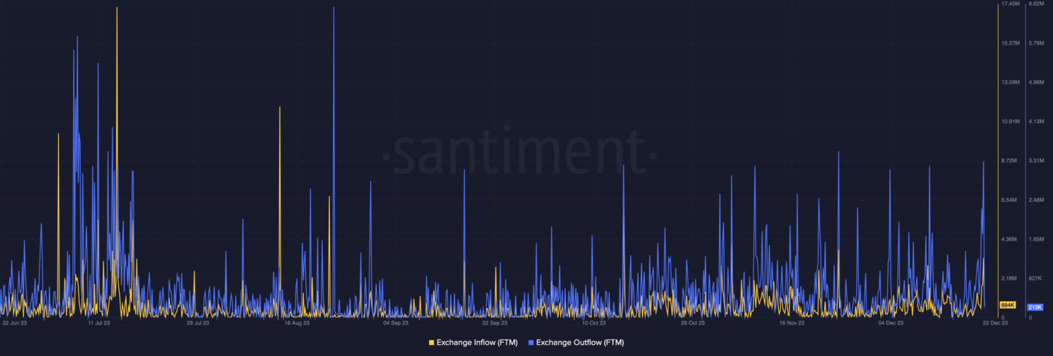 Usando los datos de Santiment, AMBCrypto miró en la entrada y salida de divisas en la red Fantom.