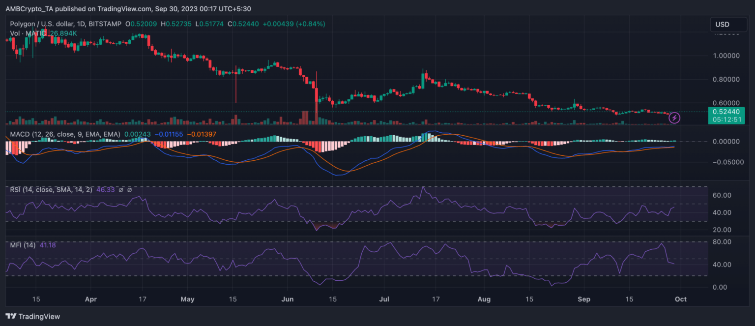 En el momento de escribir este artículo, MATIC cotizaba un 0,84% más que su precio de apertura del día. Esto fue una indicación de que MATIC tuvo una reacción positiva a la noticia. Además, el índice de fuerza relativa (RSI) mostró cierta mejora, ya que subió un poco más hasta situarse en 46,33 en el momento de esta publicación.