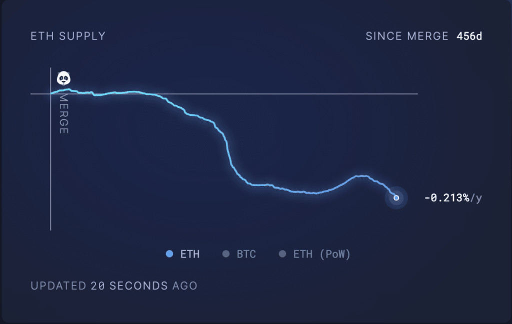 Etereum [ETH] El suministro ha caído a su nivel más bajo desde que la cadena de bloques pasó del mecanismo de consenso de prueba de trabajo (PoW) a una red de prueba de participación (PoS) en un evento conocido popularmente como “The Merge”.