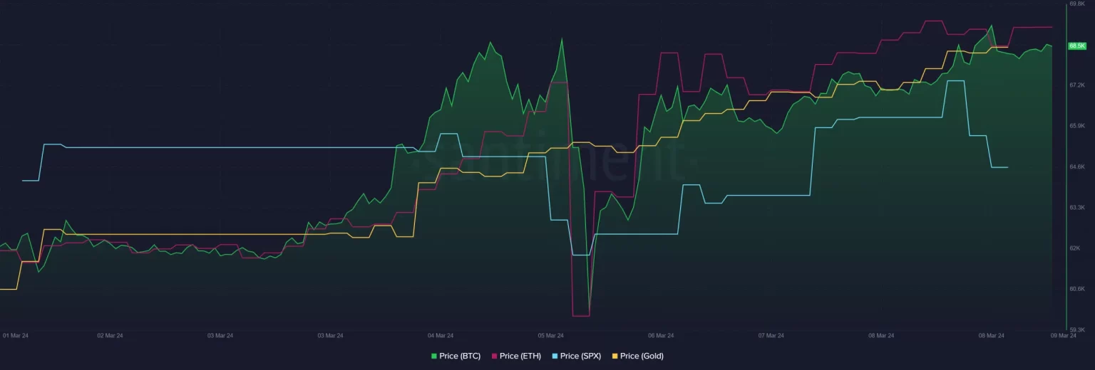 El análisis de AMBCrypto de la tendencia temporal diaria de Bitcoin el 8 de marzo mostró un aumento del 2%, manteniendo el rango de precios de $68,000.