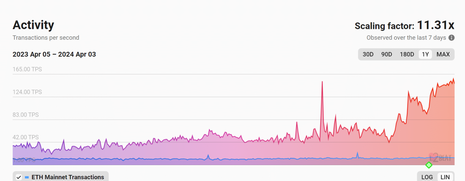 Basado en información de Latido L2El escalado de Ethereum experimentó un aumento notable a principios de abril, alcanzando un nuevo pico el 2 de abril.