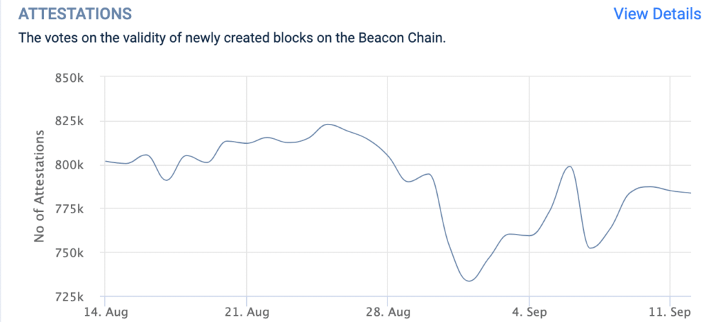 Las certificaciones de validación, vitales para confirmar transacciones y mantener la integridad de la cadena de bloques de Ethereum, fueron testigos de una disminución en el último mes. Estas certificaciones sirven como un aspecto crítico del marco de seguridad de Ethereum y requieren un monitoreo cuidadoso para garantizar la confiabilidad de la red.