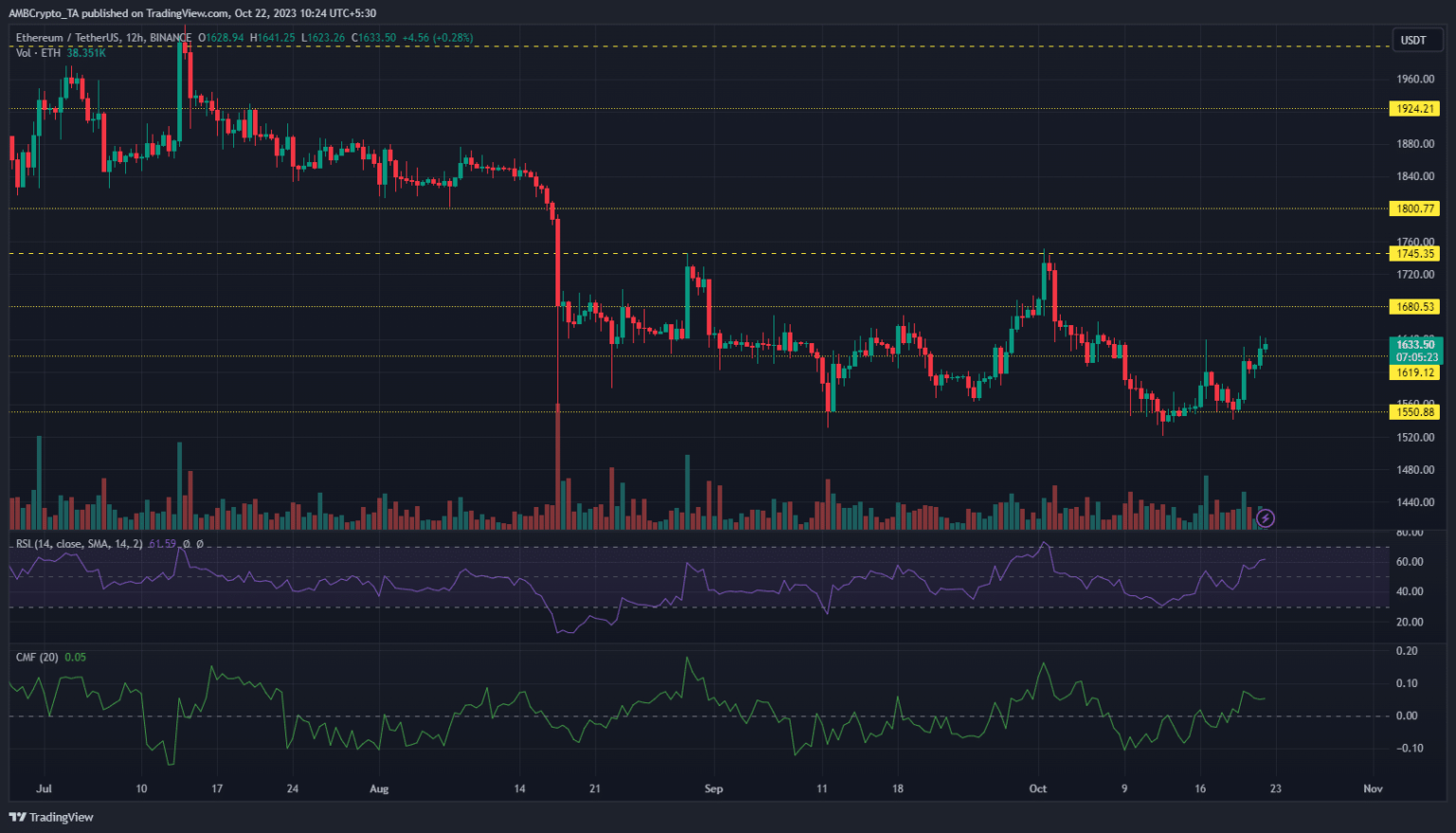 Etereum [ETH] llevó su repunte alcista un nivel más alto al convertir el nivel de $ 1,619 en soporte. Esto extendió las ganancias de la reversión alcista desde el nivel de soporte de $ 1,550 al 5,7%.