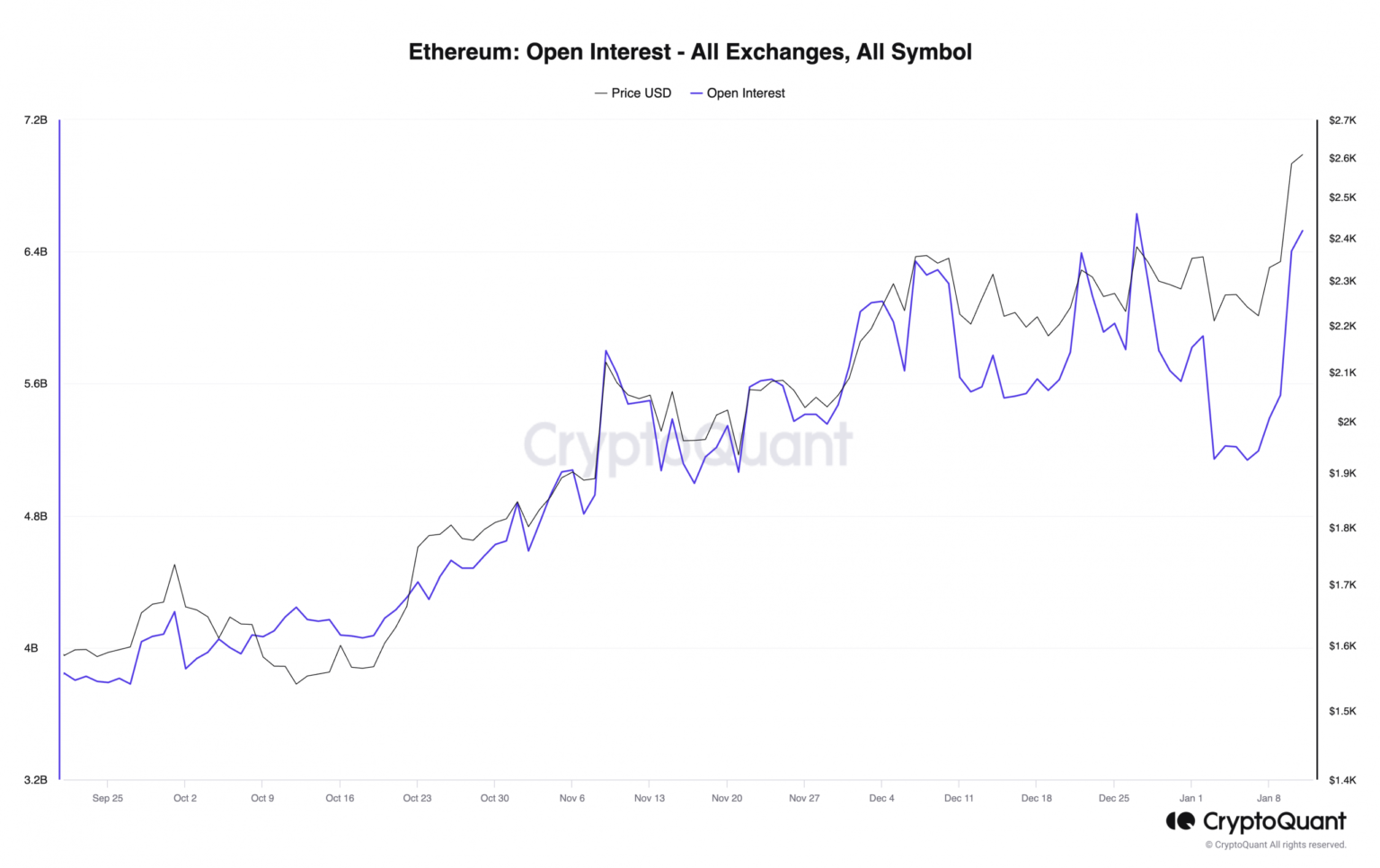 Al momento de esta edición, el interés abierto de ETH en todos los intercambios era de $6.4 mil millones de dólares, un aumento del 15% desde que se realizó la publicación falsa el 9 de enero.