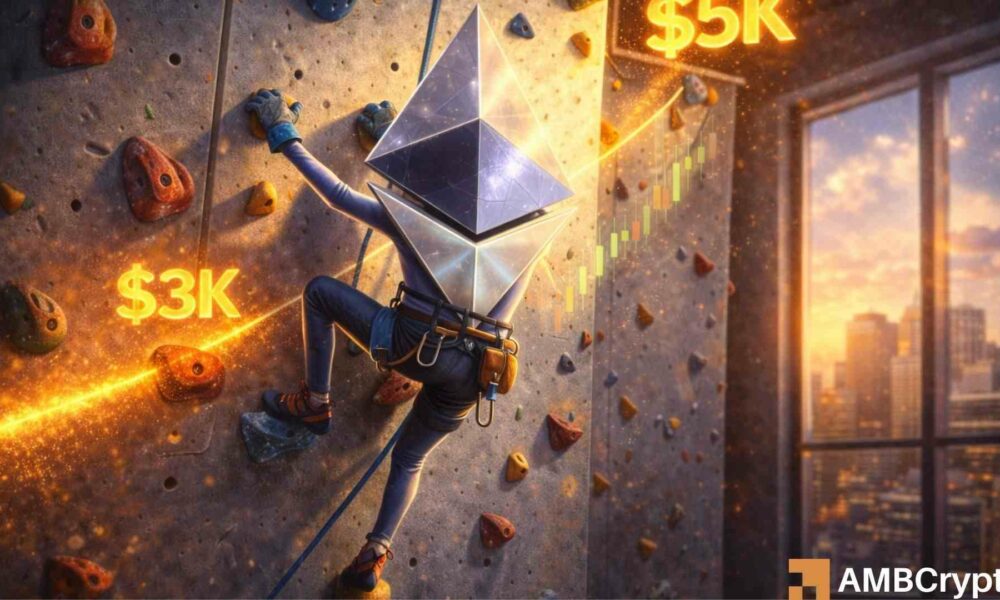 Residencia en Etereum [ETH] valor al momento de esta publicación de $ 3,35 mil, esto significaría un aumento del 60% para el escenario base de $ 5,4 mil, o un movimiento doble para el objetivo agresivo.