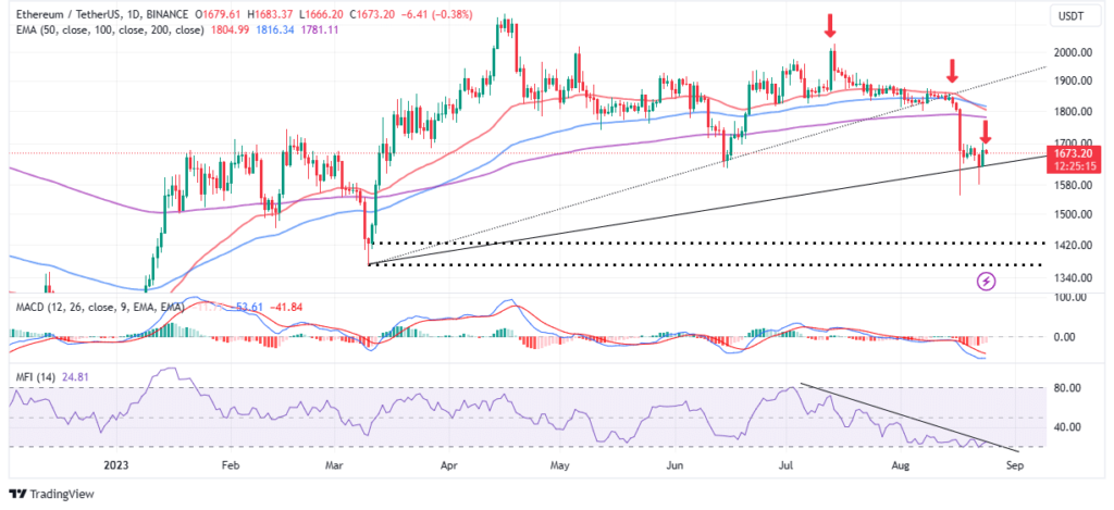 A pesar de esta absorción de ETH entre las ballenas y de una tendencia alcista que se está formando en el valor total bloqueado (TVL) del ecosistema en el sector de finanzas descentralizadas (DeFi)las perspectivas técnicas no son lo suficientemente sólidas como para sostener ganancias superiores a 1.700 dólares.