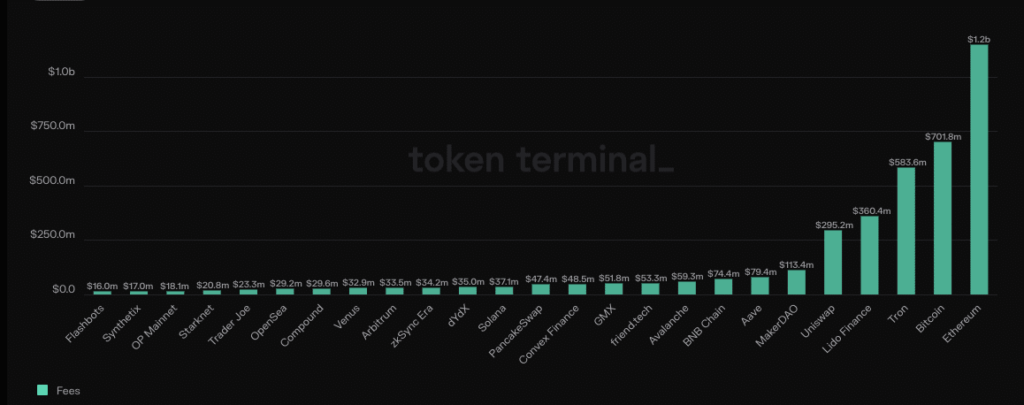Según datos de Token Terminal, las tarifas de Ethereum habían aumentó a 1.200 millones de dólares.