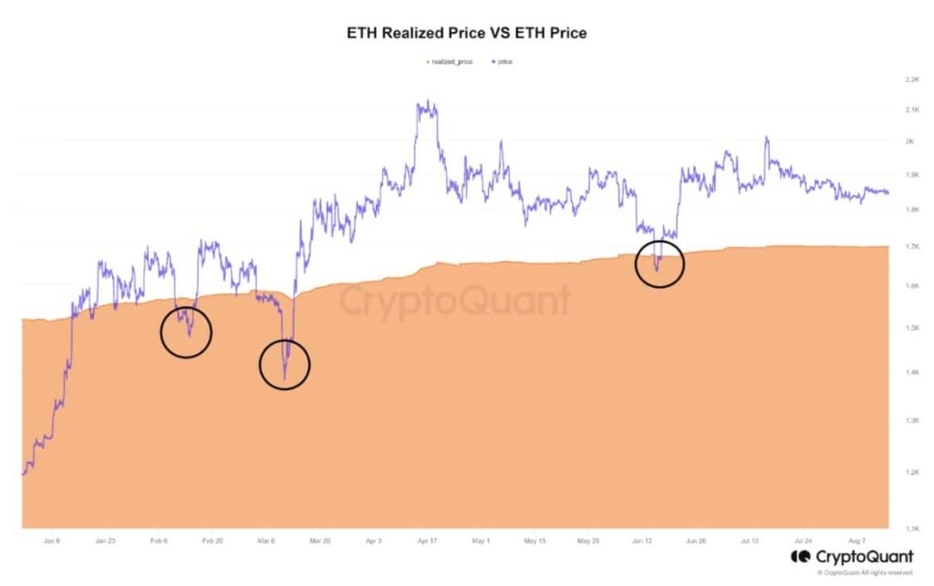Un analista y autor de CryproQuant publicó recientemente un análisis que destacó una métrica para mencionar cuándo los inversores deberían acumular ETH. Según el análisis, el precio realizado de Ethereum osciló entre $ 1500 y $ 1600 de enero a agosto de 2023. Este es el precio promedio de “equilibrio” en el que los titulares de Ethereum no ganan dinero o pierden dinero.