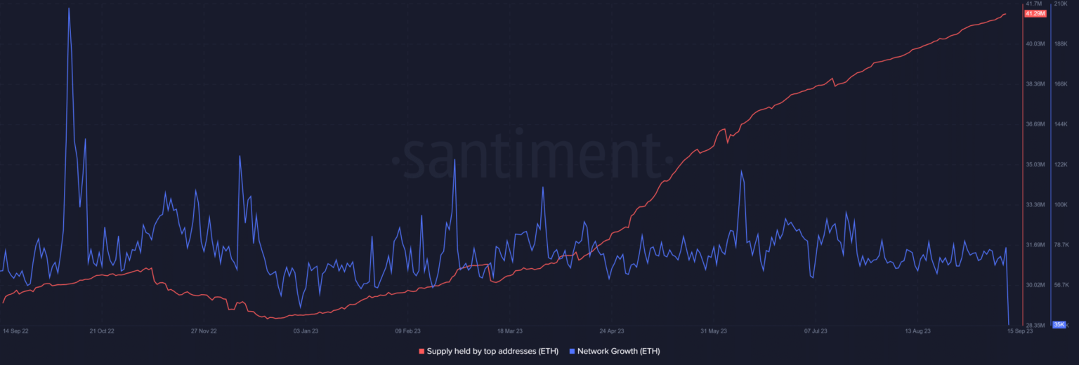 Como era de esperar, el suministro de ETH en poder de las principales direcciones ha aumentado de manera constante durante los últimos 12 meses. De hecho, ya se encuentra en su punto más alto en lo que va de año. Por el contrario, el crecimiento de la red se desaceleró, reflejando en gran medida los obstáculos generales a corto plazo en el mercado. La cifra de crecimiento de la red Ethereum, al momento de escribir este artículo, se encontraba en su nivel más bajo en los últimos 12 meses.