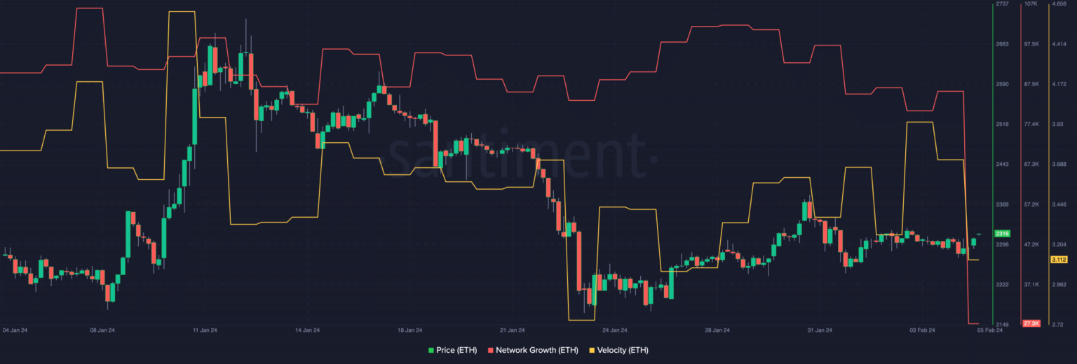 La velocidad de Ethereum también experimentó una disminución durante este período de tiempo, lo que significa una reducción en la frecuencia con la que se comercializaba ETH.