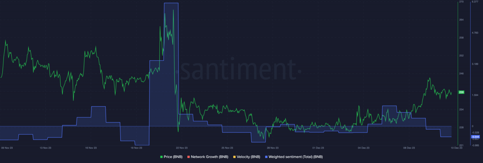 - El sentimiento en torno a BNB disminuyó, junto con el precio.
