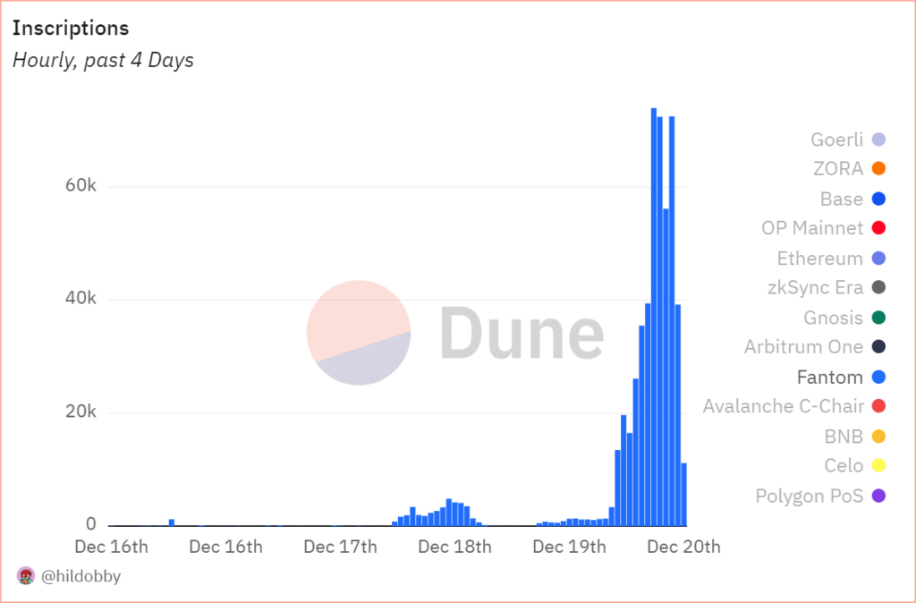 Un análisis gráfico de Dune Analytics mostró un bajo volumen de transacciones anterior, con un aumento repentino observado en las inscripciones por hora. El gráfico muestra que el número de inscripciones alcanzó el 19 de diciembre su punto más alto en los últimos cuatro días.