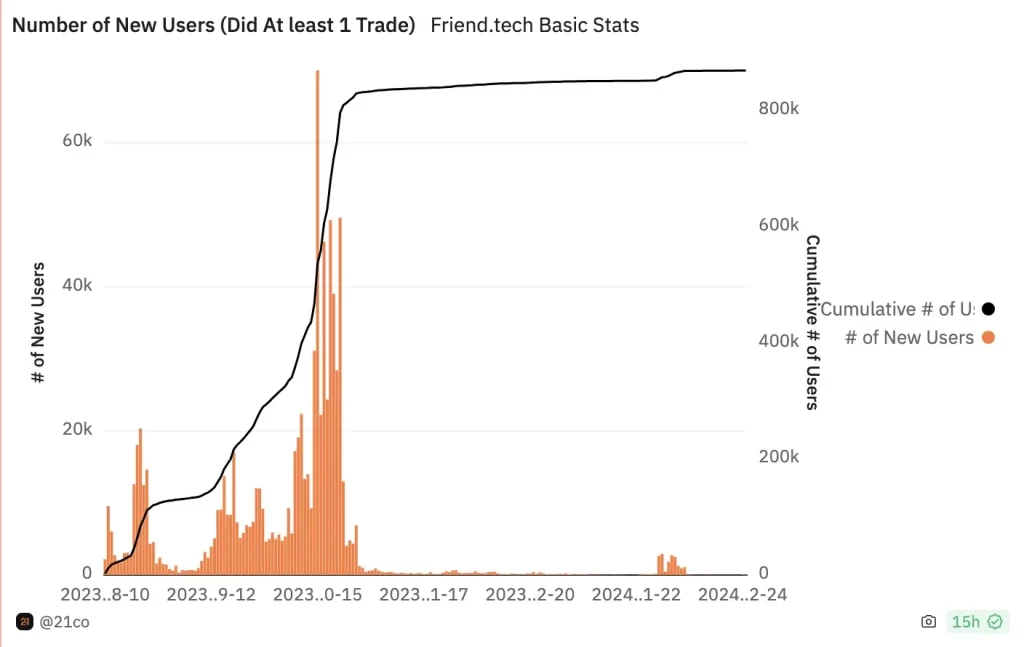 Sin embargo, unHasta el 25 de febrero, las tarifas diarias registradas por Friend.tech ascendieron a $7900, lo que marca una caída del 99% en las tarifas de protocolo desde el máximo histórico.